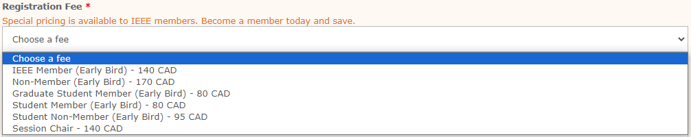 To be eligible for the discounted IEEE member prices, please inform your IEEE member number in your personal information section.